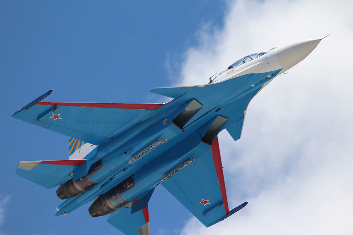 Unlike the other aerobatics team, the Russian Knights did not have the roaring head on approaches nor did they do high-speed fly-bys. Their main display was how they were able to keep in such a tight formation at such slow speeds. Look at how tight the formation is.